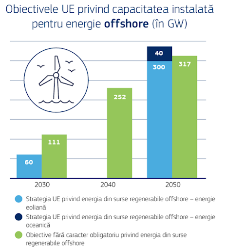 În mai 2025, Ministerul Energiei a lansat un apel public pentru exprimarea interesului privind realizarea unui studiu de identificare a zonelor offshore din Marea Neagră care ar putea fi concesionate pentru dezvoltarea parcurilor eoliene. Pentru a avansa către faza de implementare, România trebuie să identifice și să delimiteze oficial zonele maritime eligibile. Este necesară elaborarea unor reglementări detaliate și a unor proceduri administrative eficiente, care să includă sisteme de sprijin și mecanisme de finanțare adecvate. Întârzierile în adoptarea actelor subsecvente și în definirea schemei de concesiune sunt recunoscute public ca fiind semnificative. Aceste întârzieri încetinesc progresul efectiv al sectorului eolian offshore.